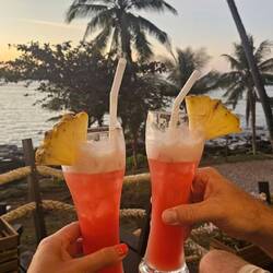 Gegessen wurde in der Suppenküche, die wir so mögen und die preislich sehr fair ist, dann kurz heim die Drohne einpacken und noch mal in den Süden. Am Lonely Beach in die Roxy Bar den Sonnenuntergang sehen und mit nem Cocktail ne coole Drohnenaufnahme machen.