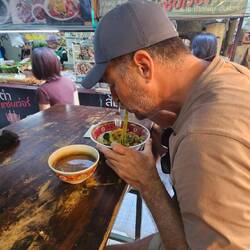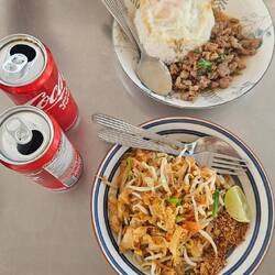 Matze aß ein Nudeln Schweinefleisch Gericht, alles übrigens auf Thai geschrieben. Wir zeigten nur drauf was wir wollen bzw zeigten auf das Essen von der die vor uns bestellte🙈😊