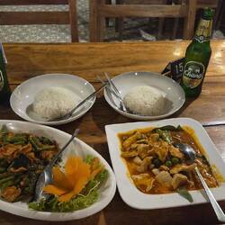 Dann kamen wir grad an Bungalow an, regnete es in strömen. Ich ging an meinen Laptop und als wir abends noch hunger bekamen ging es noch in eine Restaurant Yummi ein paar Minuten entfernt. Das hatte gute Bewertungen, sah aber eher so aus, als ob man alle Krankheiten bekam. Mein Curry schmeckte und der Preis war günstig 🙈.