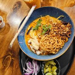 Dann fuhren wir weiter zu einem kleinen Restaurant was uns Kim empfohlen hatte. Hier aß ich mein erstes Khao Soi was wirklich anders aber lecker war. Currysuppe mit Gemüse und Nudeln und Hähnchen.