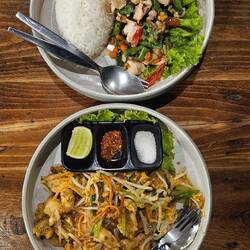 Los zum Mittagessen zur Suppenküche, Padthai essen aver dieses Mal wollte ich auch ne Suppe dazu probieren.