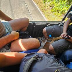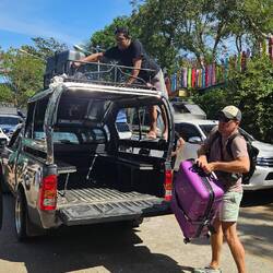 Nach dem Frühstück, packten wir fix zuende und sprangen noch einmal ins kühle Nass. Dann fix duschen und auschecken. Der Transport kam mit 11:10 erstaunlich früh. Irgendwie waren wir beide etwas am Arsch.