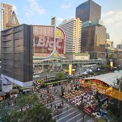 Danach ging es rüber ins Big C. Hier schauten wir uns mal um und suchten meinen Mückenstecker. Von da aus schauten wir uns noch das bunte treiben am Siam Square an und wie sie alles aufbauten für Silvester und probten.