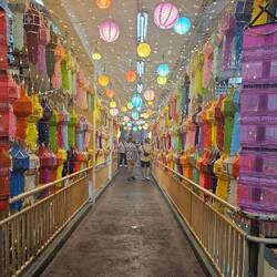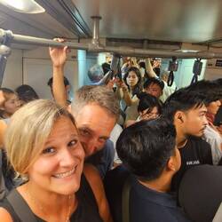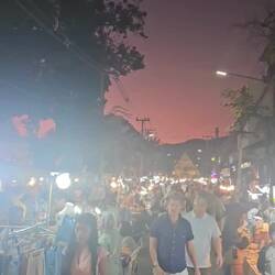 Von dort aus ging es noch zum neuen Foodmarkt bzw Nachtmarkt der aufgemacht hatte. SW1 an der Asok Station. Wir schlenderten drüber. Es gibt gutes Essen was lm Vergleich zum Terminal 21 zuvor viel teurer war viele tranken Bier. Musik lief. Nicht schlecht 😊 ich kaufte meine Kokos Poffertjes die ich so liebte und bisher nie wieder gesehen hatte und dann ging es endlich heim. Viel gelaufen mit 18.000 Schritten und viel erlebt.