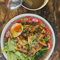Hier holen wir uns beide Nudeln mit Schweinefleisch und Soße. Sooo lecker und kostete nur 1,40€ 🍜.