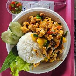 Dann halt umziehen und Mittagessen bei der Suppenküche. Ich wollte Panang Curry, hatten sie nicht. Dann bestellte ich Chicken Cashew was nicht so gut war und einen Smoothie den sie zum zweiten Mal verkackten.