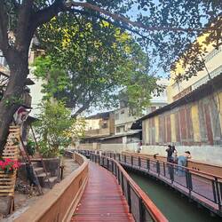 Am Fluss an der Saphan Taksin Station angekommen erstmal Snacks im 7 Eleven gekauft und etwas gegessen im Center gegenüber. Mit der ersten Stärkung konnten wir dann los und schauen.