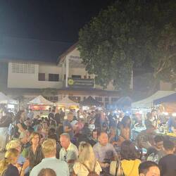 Also liefen wir ein wenig durch die Gegend. Auf die andere Seite durch Chinatown über den Fluss, tranken noch einen Kaffee bis ich irgendwann heim wollte nochmal mit Mama telefonieren und ein wenig für mich sein, bevor es dann abends zum Samstagsnachtmarkt am Südgate ging. Wir trafen uns in der Mitte und liefen dann gemeinsam runter. Es war proppe voll, richtig übel und man kam sehr schlecht an Stände oder Tische. Matze holte sich Rippchen und ich Hähnchen und wir quatschten kurz mit welchen vom Nebentisch aus Singapur. Sehr lustig. Dann suchen wir noch nach Nachtisch und schlenderten wieder heim.