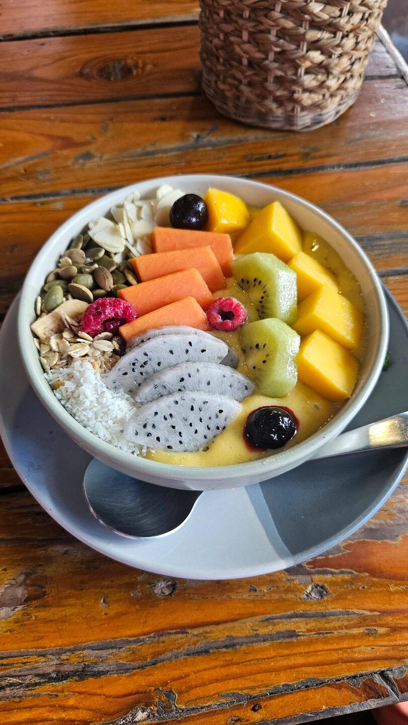 War sehr gut mal wieder alles durch zu strechen und war auch einfach gut für die Seele. Danach schnappte ich meine Klamotten und trottete Richtung Smoothie Bowl Stand. Khun Kae's Juice Bar. Soooo gut einfach. Da hab ich vor 3 Jahren mit Jan und gina schon gegessen.