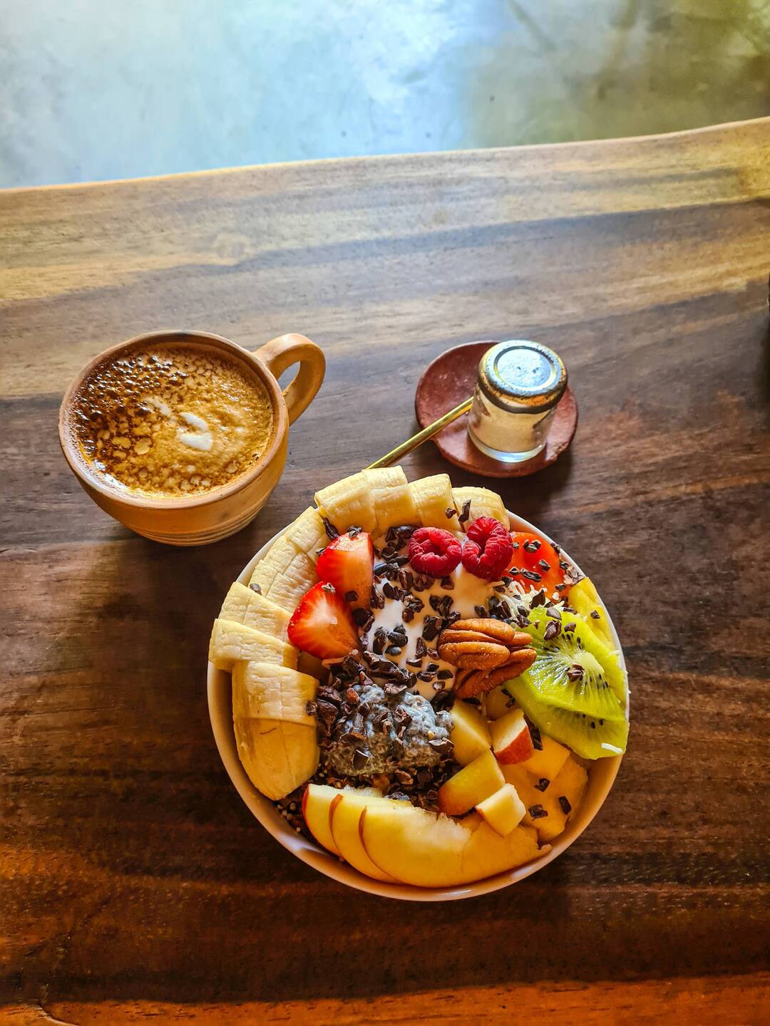 Als ich endlich ankam hatte sie schon ihren Kaffee auf. Wir bestellten noch ein Brot mit Peanutbutter und Bananen und co. Das war lecker aber echt trocken mit der ganzen Erdnusscreme. Da wäre dann doch das Avocado Toast besser gewesen.