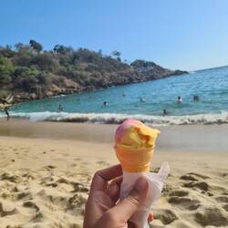 Dann fuhren wir zu einem Frühstücksplace, den ich rausgesucht hatte und frühstückten ausgiebig. Danach ging es dann zurück zu dem Strand Playa Carrizalillo. Der war von oben richtig schön und eher eine Bucht. Es war schon etwas voller aber noch okay. Wir legte uns hin schwammen etwas und blieben im Wasser bis wir Schwimmhäute bekamen. Dann gab es ein Eis und danach ging es zurück zum Hotel, da Virginia ja noch zurück nach Mazunte musste.