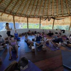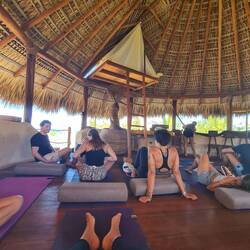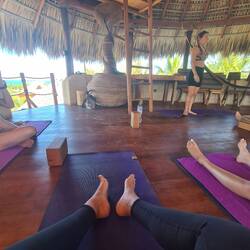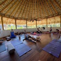 Ich fuhr mit dem Roller zur Bäckerei und holte mir für später ein Brötchen. Aß eine Banane zum Frühstück und ging zum Yoga. Das Yoga Retreat von Steffi ist auch für Leute von Außen zugänglich und so nahm ich um 10:30 Uhr am Morning Flow Yoga teil.