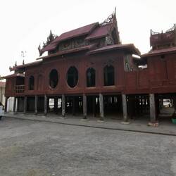 Oder das alte Kloster, Inn Dein Pagode mit dem glänzenden Teakboden, der um die Wette strahlt mit all den Schätzen der Shan Kunsthandwerke. Filligrane Arbeiten aus Glas, Stein, vergoldetem Blech. Traumhaft schön.
