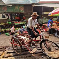 Zum Mittag hat uns Kyaw in ein Lokal mit typischem Myanmar Essen geführt. Saumässig gut. Aber wie das eben in solchen Ländern üblich ist, Essen ist wichtig aber damit verschwendet man keine Zeit. Keine Möglichkeit den müden Füssen eine kurze Pause zu gönnen.