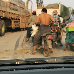 Wir haben Yangun nach 9.00 verlassen. Übrigens eine sehr saubere Stadt. Da verkehren keine LKW's, ausser im Hafengebiet und den Subburbans, keine Motorräder weil die noch von der Militärregierung verbannt wurden.