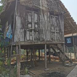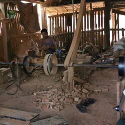 Als ich ausstieg um die Frau welche das Getreide vom Spreu trennte zu fotografieren wurde ich von einem Hund geschnappt. Helle Aufregung bei Kyaw, ich dachte der will mich ins Spiral bringen. Dafür durfte ich bei der Familie einen Rundgang durch Haus und Hof machen.