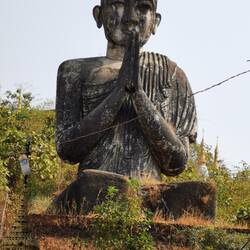 Von weitem sichtbar ist der 130 m hohe stehende Buddha. Ihm zu Füssen ein kaum kleinerer liegender und etwas rechts davon ein sitzender Buddha. Schon sehr imposant anzusehen,. Aber ich hatte keine Lust mehr die 28 Stockwerke hochzusteigen und mir unzählige Bilder anzuschauen. Müde Füsse und 42 Grad hoben nicht grad meine Stimmung.