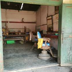 Eine Liegestätte, eine Kochnische und etwas Geschirr im Haus. 3 Webstühle im Hof, der Boden ausgelegt mit Linsen zum trocknen.