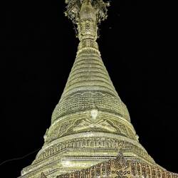 Zum schönsten und grössten liegenden Buddha Myanmars. Er ist über 50 m lang und 16 m hoch. Auf wunderbaren silbernen, mit farbigen Steinen verzierten Kissen liegt er da im Moment seines Todes, dem Übergangs ins Nirvana.