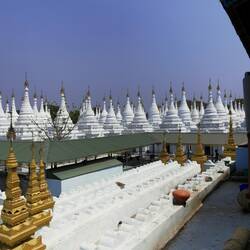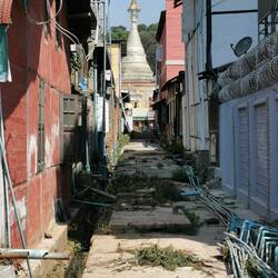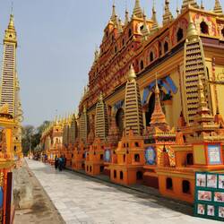 Für seine Lieblingsfrau hat ein anderer König die Hsinbyume Pagode erbauen lassen. 7 mit Wellen verzierten Terrassen führen zur Spitze. Diese Pagode wurde nach dem Erdbeben von König Mindon wieder restauriert.