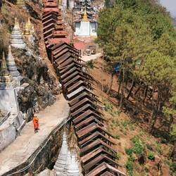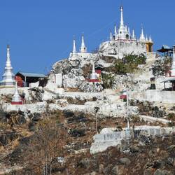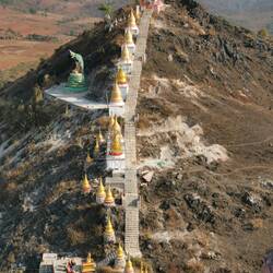 Die Shwe Tagung Oo Pagode. Tempel in Stein gehauen. Erinnern ein wenig an die historische Stätte Petra in Jordanien. Hat mir mega gut gefallen. Diese Ruhe, keine Buddhas in Massen. Nette freundliche Leute, müde Mönche die unter Bäumen Siesta halten. Lieber da hunderte Treppen steigen bei 42 Grad wie eien überdimensionalen Buddha von innen besichtigen.