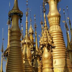 Oder die Shwe Gu Ni Pagode, eine der wichtigsten Pilgerstätten im Norden Myanmar oder die von aussen recht bunte und mit unzähligen Buddhas verzierten Thanbadday Pagode. Im Innern auch sehr speziell. Zusammen sollen dort über 583000 Buddhas jeder Grösse ausgestellt sein.
