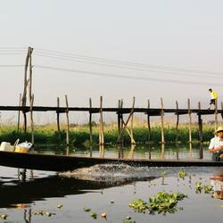 Total überlaufen, voller Touristen auch aus Myanmar. Nichts mehr mit Romantik. Inzwischen führt die Brücke über einen teils versandten, oder Algen überwucherten See.