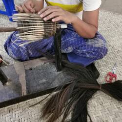 Goldblättchen. 24 karätiges Gold aus Myanmar wird durch Schlagen mit dem Hammer während mehreren Stunden und Arbeitsgängen hauchdünn geklopft. Knochenarbeit.Read more