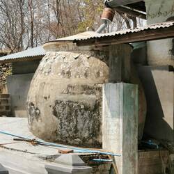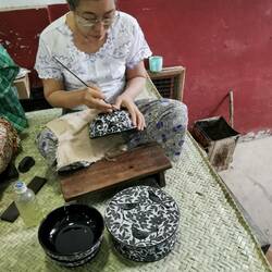 Besichtigung in einer Töpferei. Die Frau macht täglich 160 Tontöpfe.