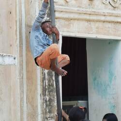 Und dann gibts da wieder die vielen alten, halb verfallenen Häuser aus der Kolionalzeit. Blumen und Bäume spriessen zwischen den alten Mauern durch. Bunte Wäsche hängt auf dem Balkon und trocknet in den Abgasen. Schiefe Türen, in den Angeln hängende Fenster. Und mein Herz schlägt höher. Aber auch die Füsse laufen von allein.