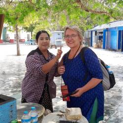 Aber bei all den Heiligtümer kommt auch der Spass und die Freude nicht zu kurz. Die Frauen "verzieren" mich gerne mit Thanaka, dieser weissen Paste aus Baumrinde. Ich probiere was mir angeboten wird, setze mich zu einer Gruppe Frauen und lass mich footografieren, scheue Kinder bekommen ein Bonbon oder einen Kugelschreiber. Und die Kinder sind stolz und schenken mir ein Lächeln und ein chesuba. Sogar der muslimische Junge. Und als ich mich vom mürrisch schauenden Vater mit einem Salem maleikum verabschiedete erhielt ich erst einen verblüfften Blick und dann ein breites Lächeln, waleikum salam.