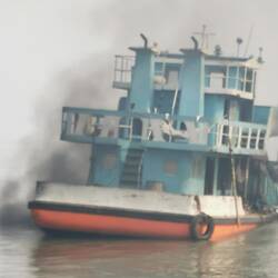 Wie verschmutzt der Chindwin Fluss ist konnten wir von der Brücke aus nicht sehen. Aber er ist ziemlich versandet und führt wenig Wasser. Viele grosse Lastkähne liegen an Land.