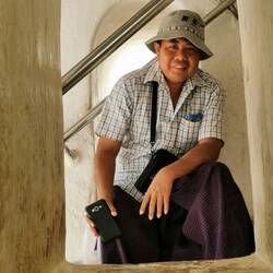 Lass uns als erstes gleich auf den Mandalay Hill gehen. Es ist noch nicht so heiss. Und wir brauchen ca 45 Minuten bis wir den Treppen Aufgang geschafft haben. Aber natürlich Kyaw, geh vor und ich folge dir 🙄. Dieser Witzbold wir sind bis fast vor die Haustür des Tempels gefahren. Und den Rest des Aufstiegs haben wir per Lift bewältigt.