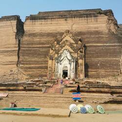 Mingun: Die Mingun Pagode sollte einst die Grösste werden wurde aber nach dem Tod König Bodawpayas nie fertiggestellt. Und das starke Erdbeben von 1838 hat dem Bau schwer zugesetzt. Jetzt ist es ein riesiger Ziegelsteinklotz.