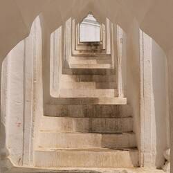 Umin Thounzeh erklimmen. Sehr schöne halbrunde Kolonade mit 45 halbgrossen Statuen.