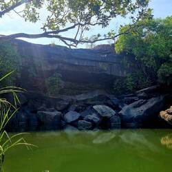Little Mertens Falls makes up part of the Punamii-Unpuu Trail. Although there was no water flowing over the falls, this little waterhole offered a beautiful oasis, some incredible rock art and aLæs mere