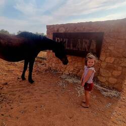 Olivia loved roaming around the station grounds to meet the "locals". She particularly loved feeding the horses hay, one piece at a time 😆. Mum befriend a horse who loved a head scratch 🐎