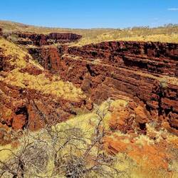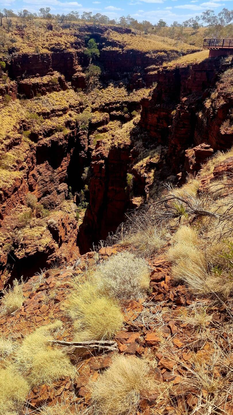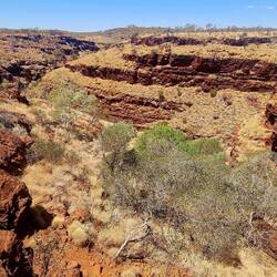 Where four gorges converge at the Junction. Cool lookout, beautiful cliff faces and deep chasms. Spectacular scenery once again at Karajini!