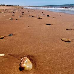 Marble Stone Beach was a fantastic find, just near the mouth of the Ashburton River. Starting a long way away in the Hamersley Ranges, stones make their way down the Ashburton River, tumbled along inもっと詳しく