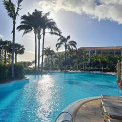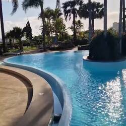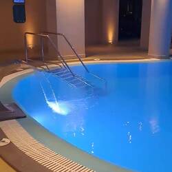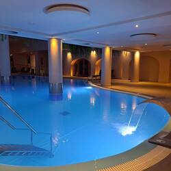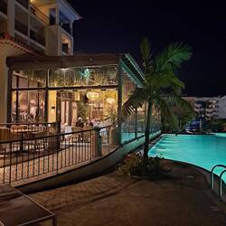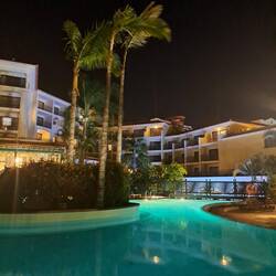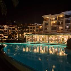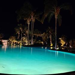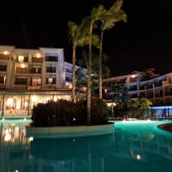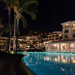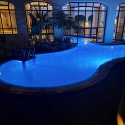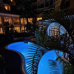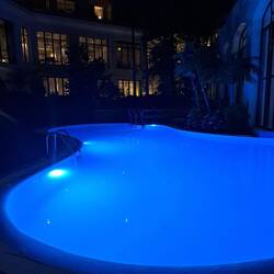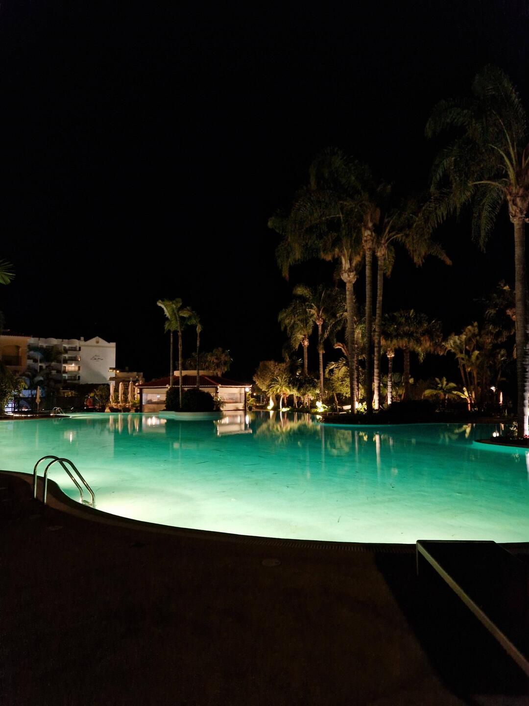 Hotellin allasalue hämärällä