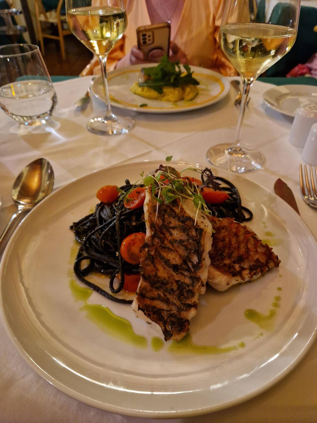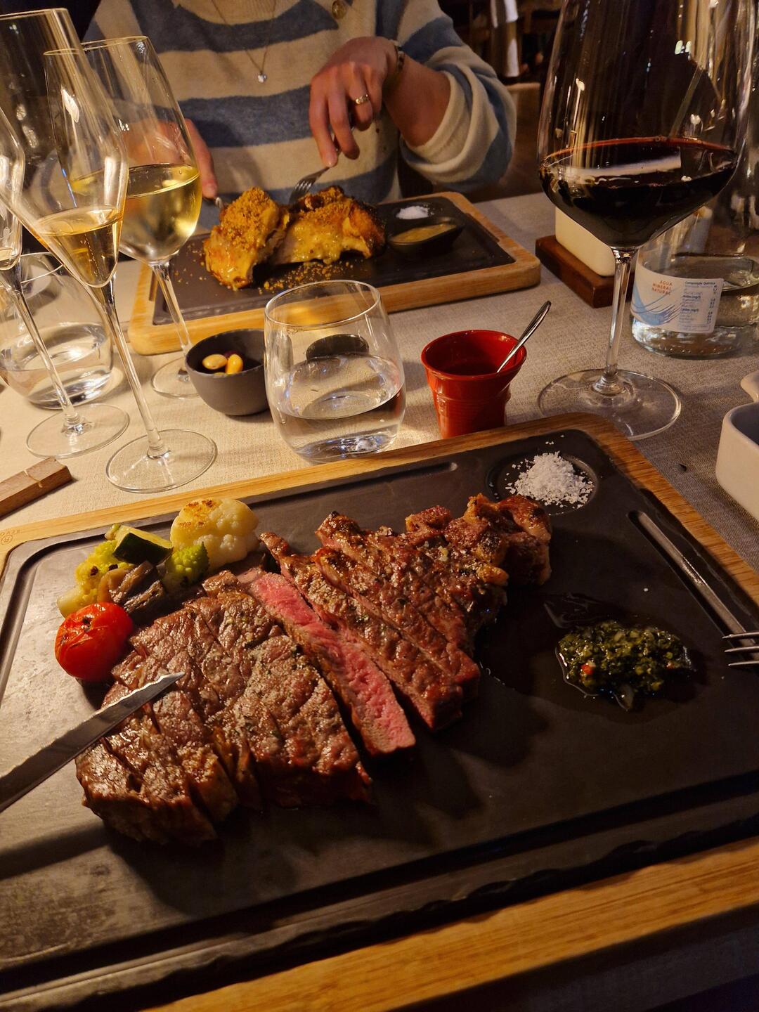 Hyvää ruokaa hotellin naapuri ravintolassa, jossa valtava viinivalikoima