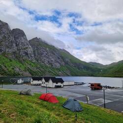 Reissun ensimmäinen camping eli tukikohta - Fjordbotn camping