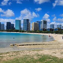 Aloha and here we are on Hawaii in the bustling city of Honolulu. From here we will explore the island. First thing today: Waikiki Beach.