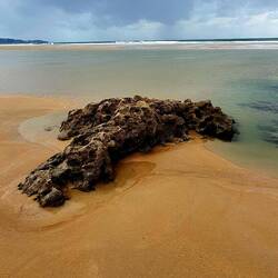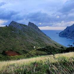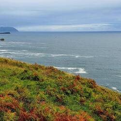Je suis la côte pendant un moment. La pluie se met à tomber, drue pendant un quart d'heure (je m'abrite en attendant). En tout, il pleuvra une heure aujourd'hui.