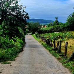 A la sortie du village, un pèlerin croisé hier me rattrape. Pour uneLeia mais