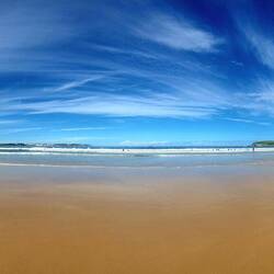 La plage de Laredo est superbe et très longue. J'en parcoure un bon bout à pied. Et je discute avec Veerle (prononcez Virle) belge flamande que j'ai déjà vue plusieurs fois. Là c'est moi quiLeia mais