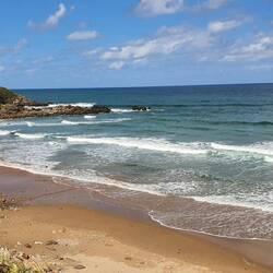 J'arrive à une jolie plage. C'est l'heure du casse-croûte (c'est tout ce qu'il y a, mais le sandwich tortilla patates et jambon est énorme).