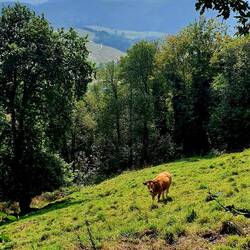 Un peu plus loin, une vache est au milieu du chemin. Elle va aimablement se pousser... 😅
