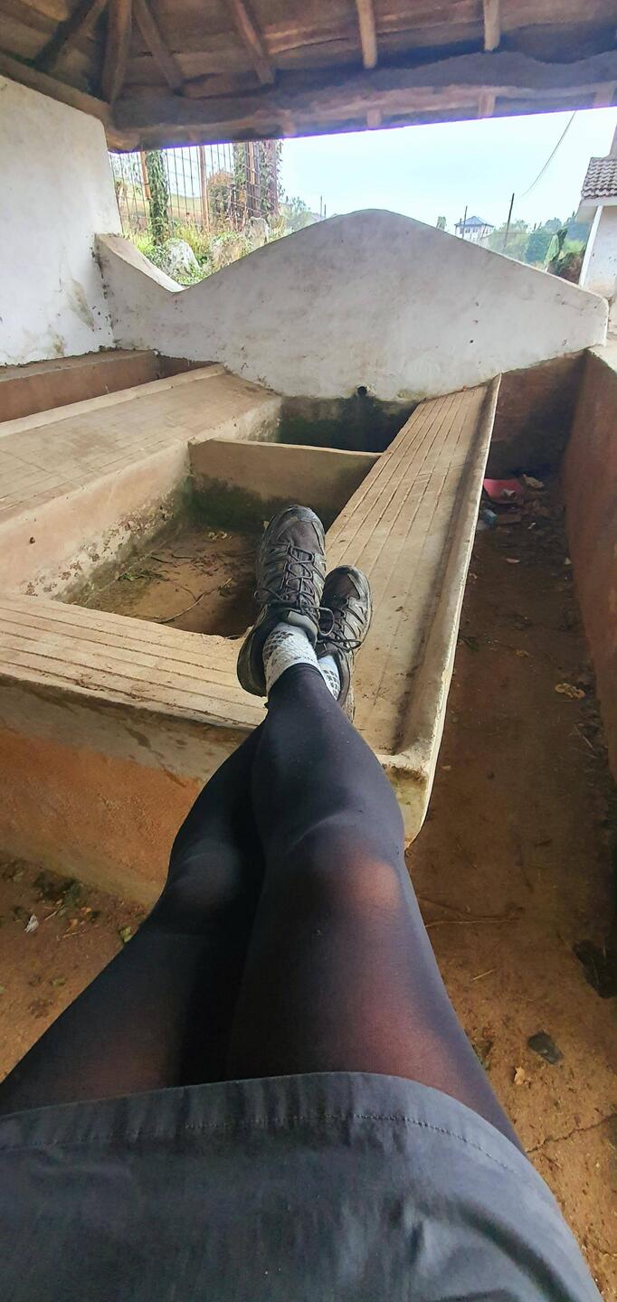 Un ancien lavoir me sert d'abri pour un petit repos à l'abri de la pluie.