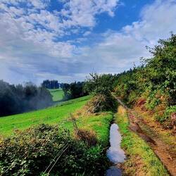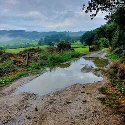 Donc journée avec 23 km, 2 h de pluie, de la boue, de la boue, les chaussettes trempées et crades, mais de jolis paysages.